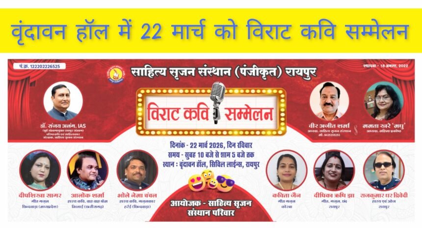 युवा रचनाकारों को मिलेगा मंच: साहित्य सृजन संस्थान की 43वीं काव्य संध्या रायपुर, साहित्य प्रेमियों के लिए 22 मार्च, रविवार…