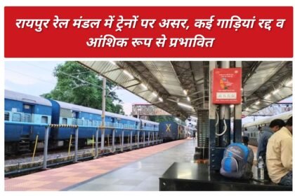 दक्षिण पूर्व मध्य रेलवे में रायपुर रेल मंडल के रायपुर-उरकुरा-मांढर सेक्शन में ऑटोमेटिक सिगनलिंग कार्य के कारण कुछ गाड़ियों का परिचालन प्रभावित…