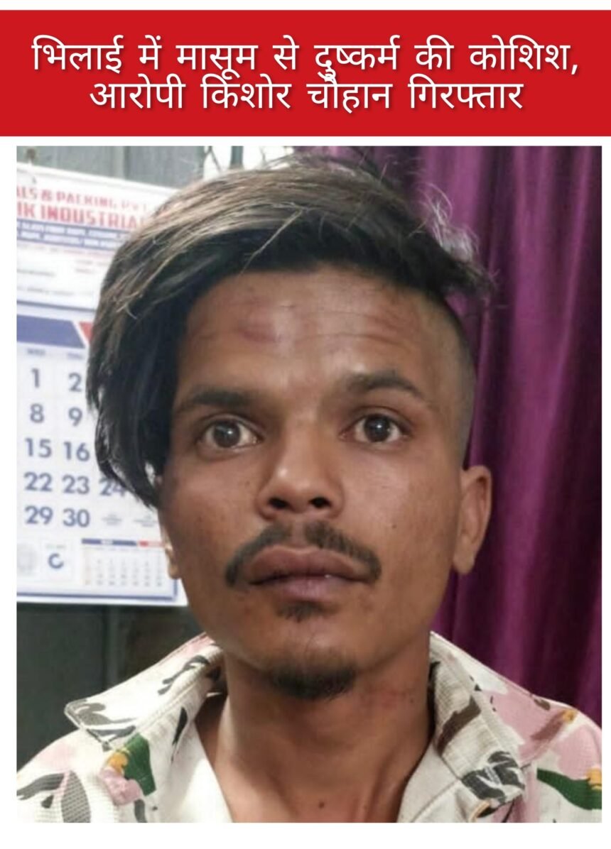 भिलाई,  थाना पुरानी भिलाई क्षेत्र के ग्राम पुरैना में मानवता को शर्मसार करने वाली घटना सामने आई है। यहां एक 5 वर्षीय मासूम बच्ची के साथ दुष्कर्म का प्रयास किया गया। घटना के बाद पुलिस ने त्वरित कार्रवाई करते हुए आरोपी किशोर चौहान, उम्र 23 वर्ष, को हिरासत में ले लिया है।