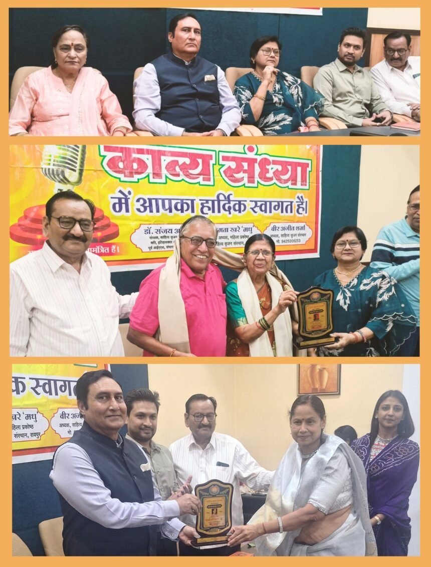 संस्था द्वारा श्रेष्ठ काव्य पाठ हेतु मनोज शुक्ला एवं शशि किरण” इंदु”को सम्मानित किया गया।