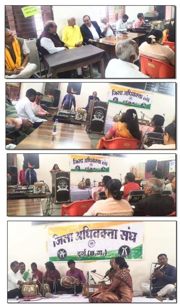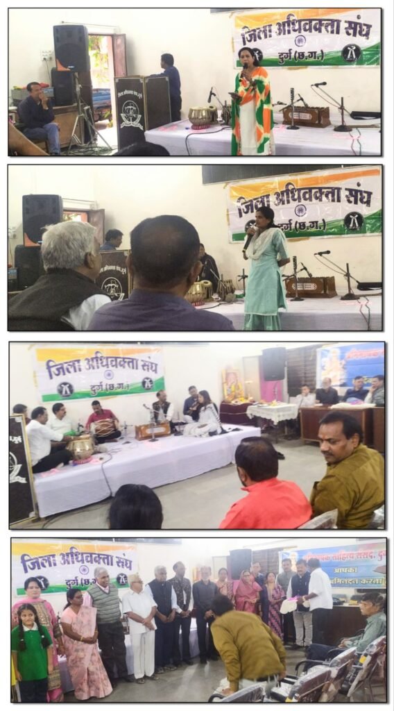 दुर्ग, अभिभाषक साहित्य संसद दुर्ग क्षितिज रंग शिविर दुर्ग और आइडियल क्रिएशन वेल्फेयर सोसायटी दुर्ग के संयुक्त तत्वावधान में जिला अधिवक्ता संघ दुर्ग के सभागार में दुर्ग भिलाई के कवियों रंगकर्मियों और लोक कलाकारों के द्वारा 77 वां  गणतंत्र दिवस और बसंतोत्सव का आयोजन किया गया । कवियों और कलाकारों का सामूहिक संगम पहली बार देखने को मिला । एक ही मंच पर उपस्थित होकर सभी ने अपनी अपनी विधा में कविता गीत गजल सहित संगीत की प्रस्तुति दी ।