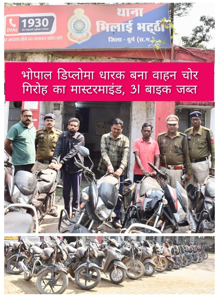 भिलाई, भिलाई-दुर्ग क्षेत्र में वर्ष 2024 से लगातार बढ़ रही दोपहिया वाहन चोरी की घटनाओं का पुलिस ने सनसनीखेज खुलासा किया है। जांच में सामने आया है कि पूरे गिरोह का सरगना एक मैकेनिकल इंजीनियरिंग डिप्लोमा धारक युवक था, जिसने अपनी तकनीकी जानकारी का इस्तेमाल वाहन चोरी की वारदातों को अंजाम देने में किया।