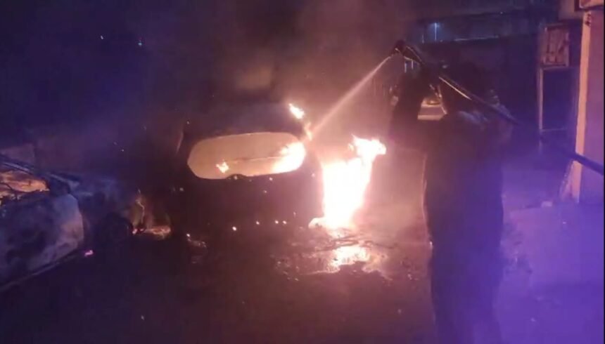 घुमंतू युवक ने जलाया अलाव, गैरेज के बाहर खड़ी दो कारें जलीं