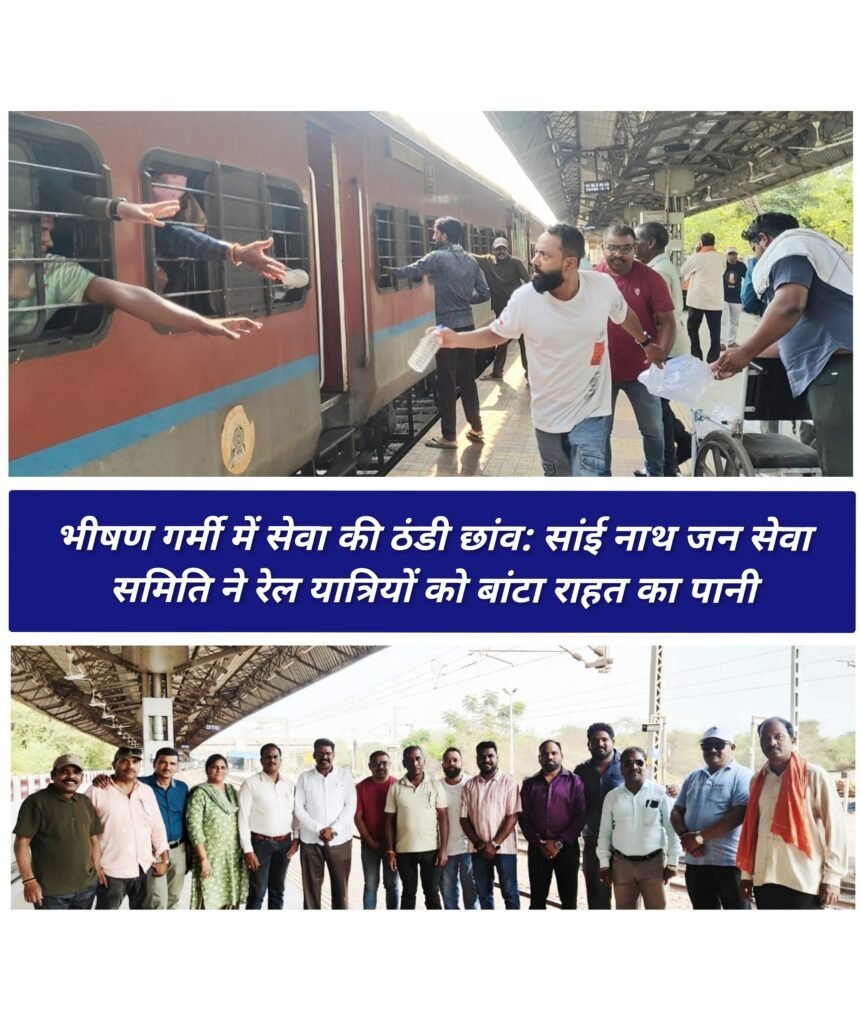भिलाई, रविवार, 5 अप्रैल 2026, भीषण गर्मी के बीच सामाजिक सरोकार निभाते हुए श्री सांई नाथ जन सेवा समिति ने एक सराहनीय पहल की। समिति द्वारा भिलाई पॉवर हाउस रेलवे स्टेशन पर ट्रेनों के सामान्य डिब्बों में यात्रा कर रहे यात्रियों को ठंडा पानी की बोतलों का वितरण किया गया, जिससे यात्रियों को बड़ी राहत मिली।