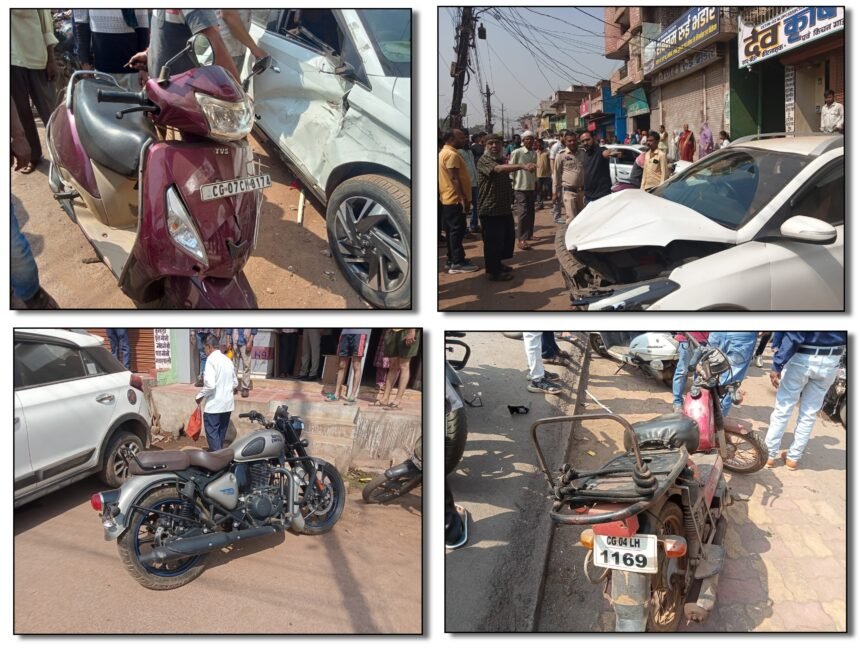 बेकाबू कार ने चार वाहनों को मारी टक्कर, एक्टीवा सवार युवती बाल-बाल बची