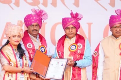 दुर्ग, भारती विश्वविद्यालय दुर्ग छत्तीसगढ़ के प्रथम दीक्षांत समारोह में शिक्षिका खेमलता गोस्वामी को टंक राम वर्मा उच्च शिक्षा मंत्री…