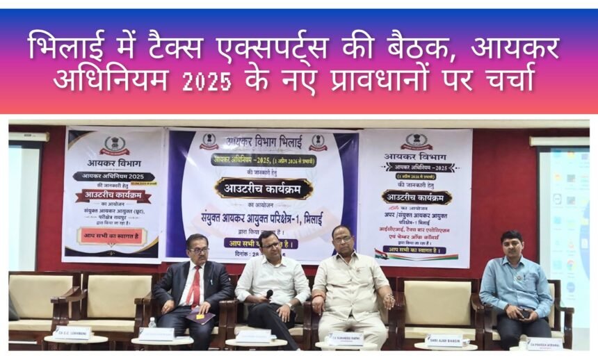 भिलाई, 28 अप्रैल 2026, आयकर विभाग, परिक्षेत्र-1, भिलाई द्वारा आयकर अधिनियम 2025 के प्रभावी क्रियान्वयन एवं करदाताओं में जागरूकता बढ़ाने के उद्देश्य से मंगलवार को सीए भवन, सिविक सेंटर में एक महत्वपूर्ण परिचर्चा एवं जागरूकता कार्यक्रम का सफल आयोजन किया गया। कार्यक्रम में कर विशेषज्ञों, व्यापारिक संगठनों और करदाताओं की बड़ी भागीदारी रही।