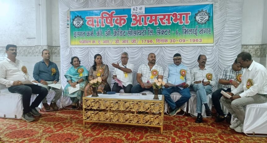 भिलाई। भिलाई इस्पात संयंत्र के कार्मिकों की सबसे पुरानी एवं प्रतिष्ठित सहकारी संस्था इस्पात कर्मचारी को-ऑपरेटिव क्रेडिट सोसाइटी लिमिटेड सेक्टर-6 भिलाई नगर की 62 वीं वार्षिक आम सभा रविवार को परशुराम भवन सेक्टर-2 में आयोजित की गई। इस दौरान अध्यक्ष बृज बिहारी मिश्र ने संस्था की उपलब्धियों एवं वित्तीय स्थिति के बारे में अपना वार्षिक प्रतिवेदन रखा।
