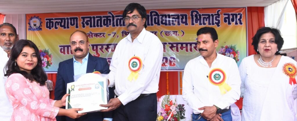 भिलाई, शिक्षाधानी भिलाई के सेक्टर-7 स्थित कल्याण स्नातकोत्तर महाविद्यालय में वार्षिक उत्सव और पुरस्कार वितरण समारोह का आयोजन किया गया। इस दौरान करीब 40 से अधिक सांस्कृतिक कार्यक्रम में विद्यार्थियों ने प्रस्तुति दी। एकल गायन से लेकर समूह गायन, नृत्य, नाट्य और जनसरोकारी गतिविधियों की मोहक प्रस्तुति दी गई। साथ ही पुरस्कार वितरण समारोह भी आयोजित किया गया।