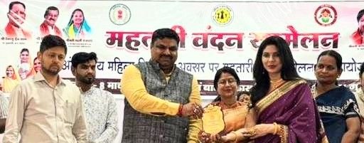 भिलाई। अंतरराष्ट्रीय महिला दिवस पर महतारी वंदन सम्मेलन का आयोजन महिला एवं बाल विकास विभाग द्वारा सतनाम भवन दुर्ग में  किया गया। जहां भिलाई स्टील प्लांट के चिकित्सा एवं स्वास्थ्य सेवाएं विभाग में मुख्य चिकित्सा अधिकारी (सीएमओ) व बर्न वार्ड के प्रभारी डॉक्टर उदय की पत्नी प्रेरणा धाबर्डे का सम्मान कैबिनेट मंत्री गजेंद्र यादव ने किया।