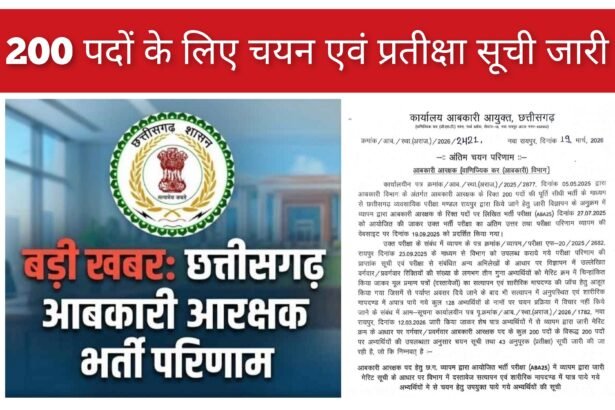 रायपुर, आबकारी विभाग के अंतर्गत आबकारी आरक्षक के 200 रिक्त पदों की पूर्ति हेतु छत्तीसगढ़ व्यवसायिक परीक्षा मंडल (व्यापम) द्वारा…