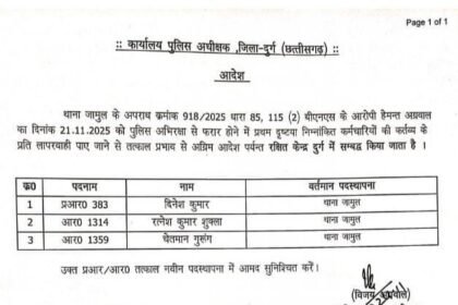 दुर्ग। वरिष्ठ पुलिस अधीक्षक विजय अग्रवाल ने जामुल थाना क्षेत्र में पुलिस अभिरक्षा से आरोपी के फरार होने की गंभीर…