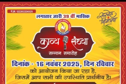 39वीं मासिक काव्य संध्या में प्रदेशभर के रचनाकार होंगे शामिल साहित्य सृजन संस्थान द्वारा विशिष्ट रचनाकारों का सम्मान समारोह रायपुर,…