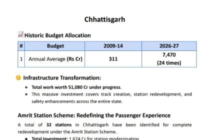 भिलाई, दक्षिण पूर्व मध्य रेलवे रायपुर रेल मंडल में रविवार 01 फरवरी को घोषित केन्द्रीय बजट के ऊपर रेल मंत्री…