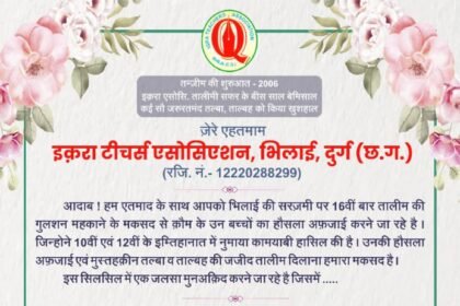 20 अक्टूबर को जामा मस्जिद सेक्टर-6 के सामुदायिक भवन में सुबह 10 बजे से आयोजित है भिलाई, इस्पात नगरी भिलाई…