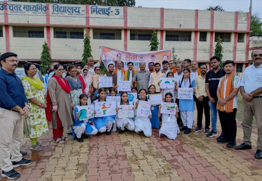 भिलाई-3, शनिवार, सेवा पखवाड़ा 2025 कार्यक्रम के अंतर्गत, भाजपा जिला संगठन के निर्देशानुसार तथा स्कूल शिक्षा विभाग, छत्तीसगढ़ शासन के आदेशानुसार, शासकीय नवीन कन्या उच्चतर माध्यमिक शाला, भिलाई-3 में शनिवार को रंगोली, निबंध लेखन, चित्रकला एवं वाद-विवाद प्रतियोगिताओं का आयोजन किया गया। वाद-विवाद प्रतियोगिता का विषय था – “स्वच्छता पर सरकार की ज़िम्मेदारी बनाम हमारी ज़िम्मेदारी”