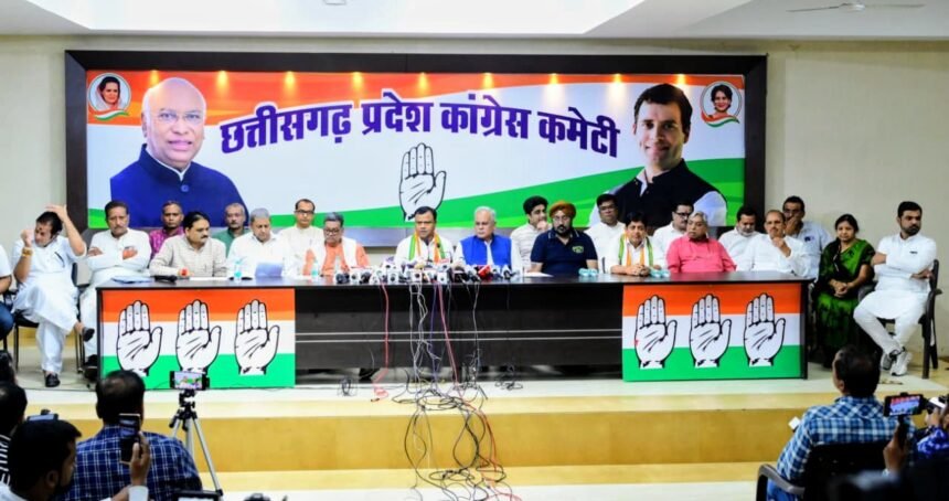 रायपुर, प्रदेश कांग्रेस मुख्यालय राजीव भवन में प्रदेश कांग्रेस अध्यक्ष दीपक बैज, नेता प्रतिपक्ष डॉ. चरणदास महंत, पूर्व मुख्यमंत्री भूपेश बघेल और कांग्रेस के वरिष्ठ नेताओं ने पत्रकार वार्ता लेकर आरोप लगाया कि