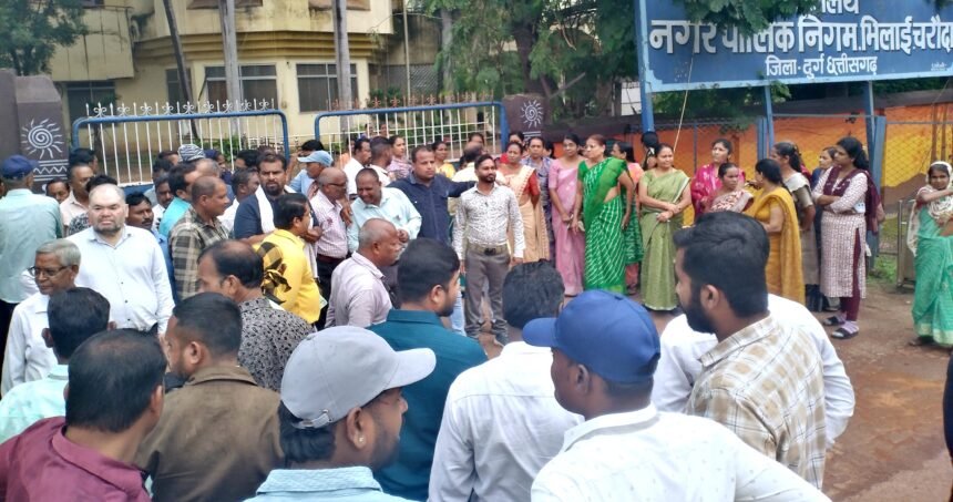 भिलाई / तीन महीने का वेतन नहीं मिलने से आर्थिक समस्या का सामना कर रहे भिलाई – चरोदा नगर निगम के कर्मचारियों का आक्रोश आज फूट पड़ा। सुबह समूह में पहुंचे कर्मचारियों ने निगम के भिलाई-3 स्थित मुख्य कार्यालय के प्रवेश द्वार पर ताला जड़कर बाहर धरना प्रदर्शन शुरू कर दिया।