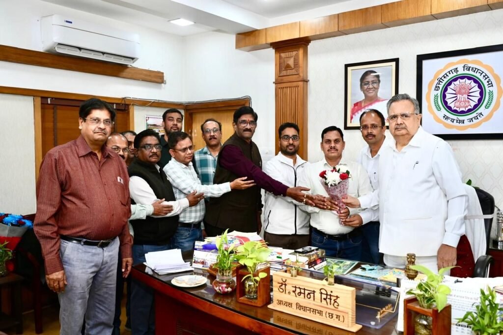 रायपुर, सोमवार, छत्तीसगढ़ राज्य विद्युत मंडल पत्रोपाधी अभियंता संघ के प्रतिनिधिमंडल ने विधानसभा अध्यक्ष आदरणीय डॉ. रमन सिंह से सौजन्य भेंट की। संघ के प्रांतीय अध्यक्ष इंजीनियर श्रीकांत बड़गैंया के नेतृत्व में हुई इस मुलाकात में राजनांदगाँव क्षेत्र में एमआर डिफरेंस के कारण पिछले तीन-चार वर्षों से लंबित सहायक अभियंता एवं कनिष्ठ अभियंता के प्रकरणों पर विस्तार से चर्चा की गई।