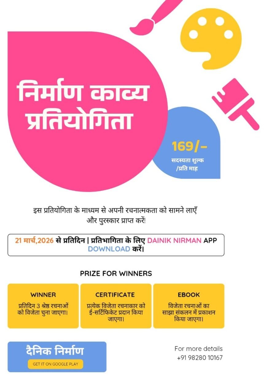 दैनिक निर्माण के मुख्य संपादक जसराज विश्नोई ने बताया कि यह प्रतियोगिता विशेष रूप से उभरते कवियों और युवा रचनाकारों के लिए एक सशक्त मंच सिद्ध होगी। इसके माध्यम से प्रतिभागियों को अपनी रचनात्मक क्षमता को सामने लाने और अपनी काव्य यात्रा को नई दिशा देने का अवसर मिलेगा।