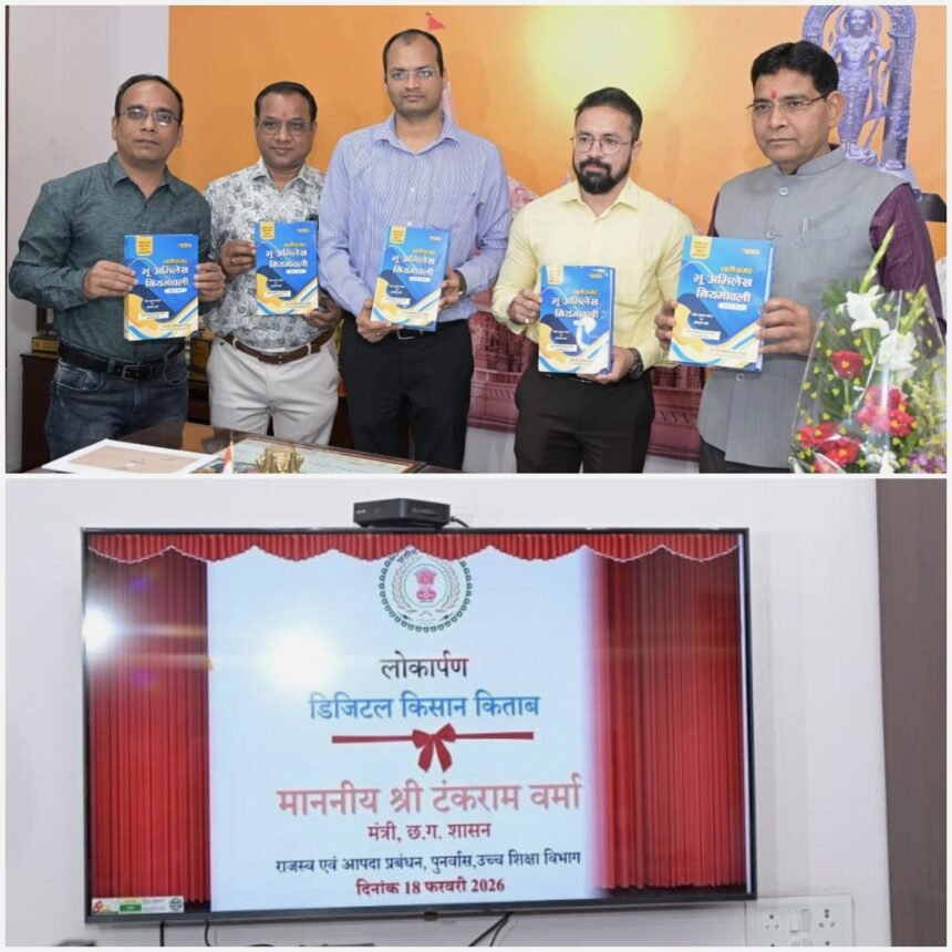रायपुर, बुधवार, छत्तीसगढ़ में आज डिजिटल शासन की दिशा में एक महत्वपूर्ण पहल की गई। राजस्व मंत्री टंक राम वर्मा ने आज निवास कार्यालय में डिजिटल किसान किताब का औपचारिक शुभारंभ किया। इस अवसर पर उमेश कुमार पटेल और श्रीकांत वर्मा द्वारा लिखित छत्तीसगढ़ भू-अभिलेख नियमावली भाग 1 से 4 पुस्तक का भी विमोचन किया गया।