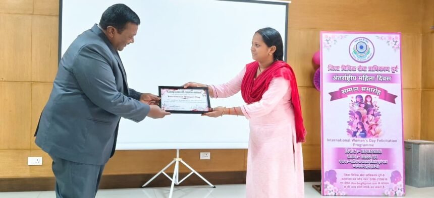 दुर्ग, छत्तीसगढ़ उच्च न्यायालय, बिलासपुर के आदेश के पालन में महिलाओं के सशक्तिकरण एवं उनके अधिकारों के प्रति जागरूकता बढ़ाने के उद्देश्य से अंतर्राष्ट्रीय महिला दिवस के उपलक्ष्य पर शनिवार 7 मार्च को जिला न्यायालय दुर्ग में एक गरिमामय सम्मान समारोह का आयोजन किया गया। उक्त कार्यक्रम महिलाओं के सशक्तिकरण के प्रति मुख्य न्यायाधिपति, छत्तीसगढ़ उच्च न्यायालय रमेश सिन्हा के प्रेरणादायी विचारों से प्रेरित होकर आयोजित किया गया।