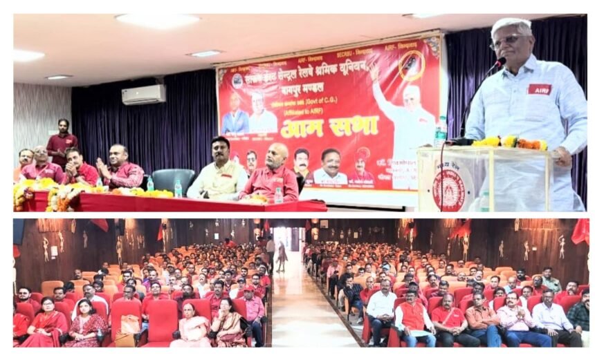 नागपुर/भिलाई: रेल कर्मियों के हितों की रक्षा और यूनियन की मजबूती के लिए आज नागपुर की धरती पर इंकलाबी नारों का सैलाब उमड़ पड़ा। SECR श्रमिक यूनियन की आम सभा के आमंत्रण पर NRMU (CR-KR) के महामंत्री कॉमरेड वेणु पी. नायर और AIRF के महामंत्री कॉमरेड शिव गोपाल मिश्रा की उपस्थिति में आयोजित इस विशाल रैली में रायपुर डिवीजन का दबदबा रहा।