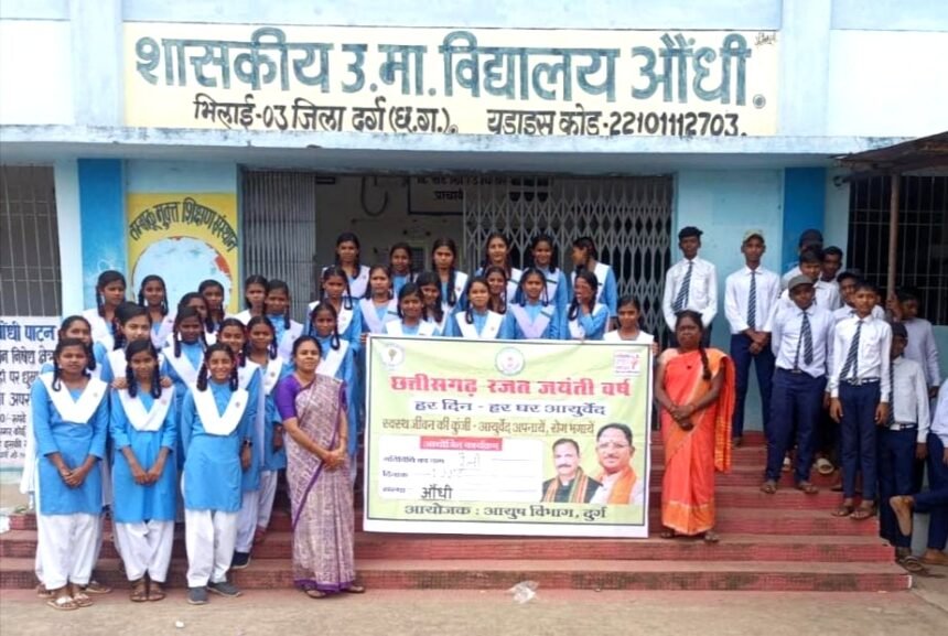 भिलाई। छग राज्य स्थापना के रजत जयंती वर्ष के अंतर्गत आयुष विभाग दुर्ग द्वारा एक से 21 सितम्बर तक हर दिन हर घर आयुर्वेद थीम पर विविध आयुर्वेदिक जनजागरूकता कार्यक्रम आयोजित किए जा रहे हैं। शासकीय आयुर्वेद औषधालय औंधी द्वारा इस अभियान की शुरुआत भगवान श्री धन्वंतरी की पूजा-अर्चना से की गई।