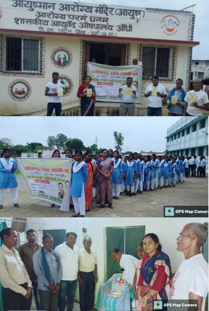 इस दौरान जनप्रतिनिधियों और ग्रामीणजनों की उपस्थिति रही। पाम्पलेट वितरण कर आगामी 21 दिनों तक चलने वाले आयुर्वेद संबंधी आयोजनों की जानकारी दी गई। जागरूकता रैली के माध्यम से आम लोगों को आयुर्वेद के महत्व और उपयोगिता के प्रति जागरूक किया गया। औषधालय प्रभारी डा. अनुपमा नायक ने बताया कि कलेक्टर अभिजीत सिंह के निर्देश एवं जिला आयुष अधिकारी डा. दिनेश चंद्रवंशी के मार्गदर्शन में कार्यक्रमों के सफल क्रियान्वयन के लिए टीम बनाकर कार्य किया जा रहा है। विभिन्न संस्थाओं और समुदायों में पहुंचकर कार्यक्रम संचालन सुनिश्चित कर रही है।