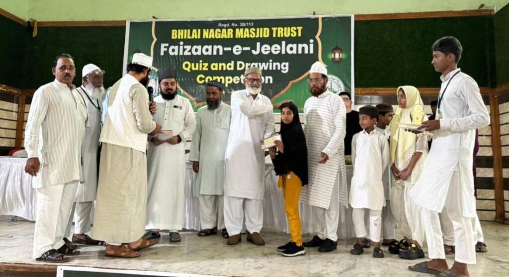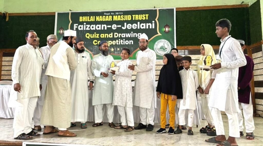 भिलाई। भिलाई नगर मस्जिद ट्रस्ट की ओर से ग्यारहवीं शरीफ के मुबारक मौके पर फैजाने जीलानी क्विज़ और ड्राइंग-पेंटिंग प्रतियोगिता जामा मस्जिद सेक्टर-6 के मुस्लिम कम्युनिटी हॉल में रखी गई। इसमें दुर्ग-भिलाई के बच्चों ने बढ़ चढ़कर भाग लिया। क्विज में दीनी मालूमात के सवाल रोचक ढंग से पूछे गए। वहीं ड्राइंग पेंटिंग में बच्चों ने खाना ए काबा, मदीना शरीफ, दरगाह, मस्जिदों और दूसरी इस्लामिक महत्व की इमारतों को कैनवास पर उतारा।
