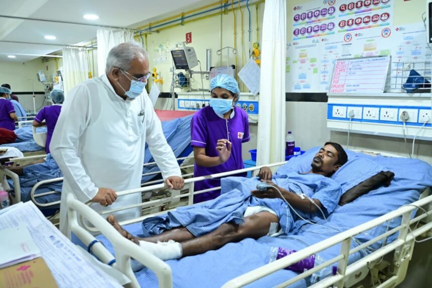 रायपुर। इस्पात गोदावरी हादसे के मृतकों के प्रति संवेदना व्यक्त करते हुए पूर्व मुख्यमंत्री भूपेश बघेल एवं प्रदेश कांग्रेस अध्यक्ष दीपक बैज ने हादसे में घायलों के शीघ्र स्वस्थ होने की कामना की है। उन्होंने नारायणा हॉस्पिटल पहुंचकर घायलों से मुलाकात कर उनका हाल-चाल जाना।