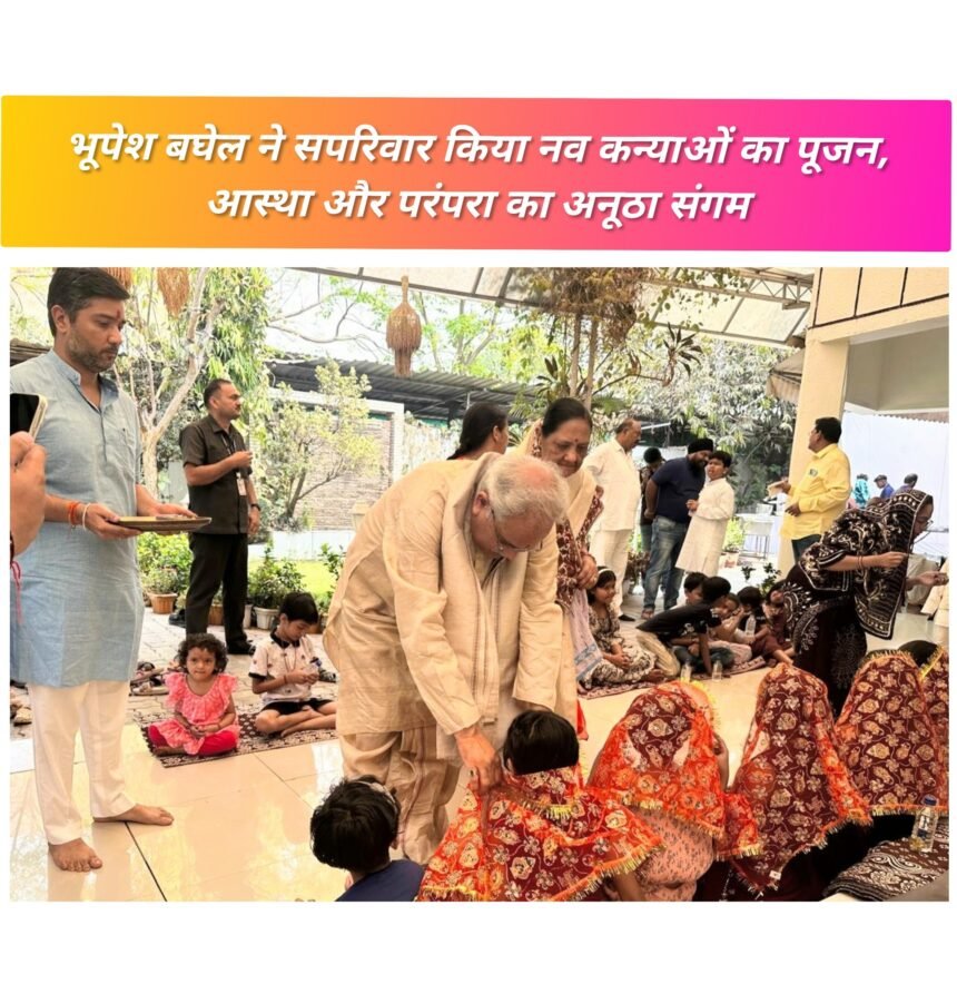 कार्यक्रम की विशेषता रही ‘कन्या पूजन’, जिसमें नौ कन्याओं को देवी स्वरूप मानकर उनका पूजन-अर्चन किया गया। भूपेश बघेल ने स्वयं अपनी धर्मपत्नी मुक्तेश्वरी बघेल, पुत्र चैतन्य बघेल एवं पुत्रवधू सहित पूरे परिवार के साथ कन्याओं के चरण पखारकर उनकी पूजा अर्चना की और उन्हें उपहार व प्रसाद भेंट किया। यह दृश्य न केवल धार्मिक आस्था का प्रतीक था, बल्कि भारतीय संस्कृति में नारी सम्मान की परंपरा को भी दर्शाता है।