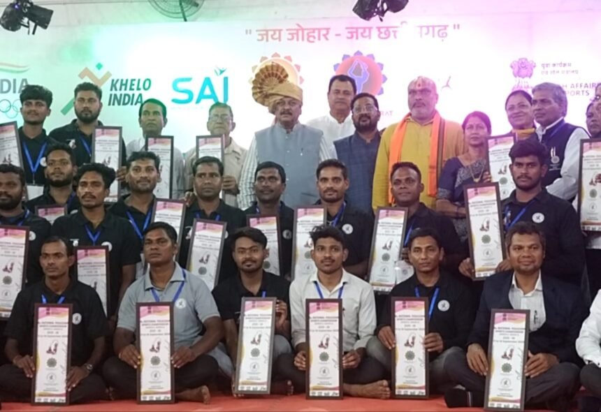 मुख्य अतिथि सांसद विजय बघेल ने अपने उद्बोधन में कहा – योग न केवल प्रतियोगिता का माध्यम है, बल्कि यह स्वस्थ,अनुशासित और संतुलित जीवनशैली अपनाने का सबसे प्रभावी साधन है। राष्ट्रीय स्तर पर ऐसे आयोजन युवाओं को प्रेरित करते हैं और भारत की प्राचीन योग परंपरा को वैश्विक पहचान दिलाते हैं। समापन समारोह में योगासन भारत के अध्यक्ष उदित सेठ योगासन भारत, संजय मालपानी एशियन योगासन रचित कौशिक कोषाध्यक्ष योगासन भारत, श्रेयस मार्कण्डेय टी.एस.आर.,उत्पल दत्त कंपटीशन डायरेक्टर व योगासन भारत के कार्यकारिणी सदस्यों ने गोस्वामी जयंत विष्णु भारती अध्यक्ष,अनूप बंसल सरंक्षक व डॉ.मेजर सिंह को पगड़ी पहनाकर सम्मानित किया। कार्यक्रम का संचालन गोस्वामी जयंत विष्णु भारती,छत्तीसगढ़ी योगासन स्पोर्ट्स एसोसिएशन द्वारा किया गया तथा धन्यवाद ज्ञापन शैलेंद्र विशी, ज्वाइंट डायरेक्टर छत्तीसगढ़ योगासन स्पोर्ट्स एसोसिएशन ने प्रस्तुत किया। समापन अवसर पर खिलेंद्र साहू, भोजेंद्र साहू, डीके देवांगन, धीरेन्द्र वर्मा, तनिश दास, मिथलेश वर्मा,नरेंद्र पटेल, सुमन भारती, मधुस्मिता पंडा, नीतू गुप्ता, सुधा सोनी, तिजऊ साहू, शंभु कुशवाहा, बलवंत सिंह, ओमप्रकाश देवांगन, मेघेश सोनी आदि सदस्य उपस्थित थे।