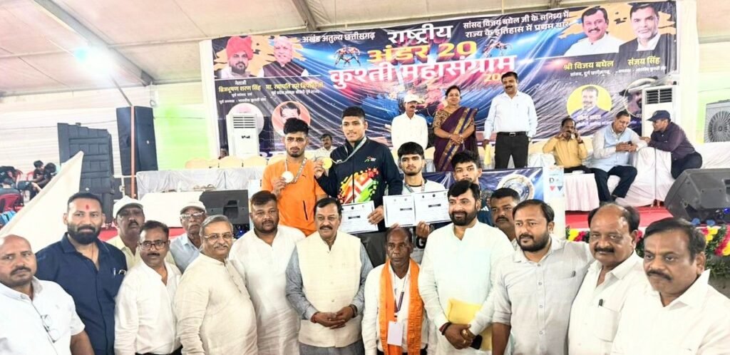 भिलाई, दुर्ग सांसद विजय बघेल के नेतृत्व एवं मार्गदर्शन में प्रथम बार आयोजित अंडर 20 कुश्ती का महासंग्राम रोमांचक होता जा रहा है। रोजाना बड़ी तादाद में मौजूद खेल प्रेमियों के बीच देश भर के पहलवान कुश्ती के दावपेंच आजमा रहे हैं।