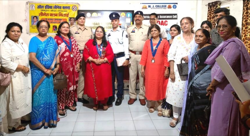 भिलाई। लीनेस क्लब की ओर से सेवा सप्ताह के अंतर्गत एमजे कॉलेज में यातायात सुरक्षा पर एक कार्यशाला का आयोजन किया गया। जिसमें रायपुर में पदस्थ सहायक उप निरीक्षक (यातायात प्रशिक्षक) टीके लाल भोई ने उपस्थित स्टूडेंट व अन्य लोगों को यातायात नियमों की जानकारी दी और इसका पालन सुनिश्चित करने का आह्वान किया।शुरुआत में लीनेस क्लब की ओर से अध्यक्ष रीटा कुखरानिया ने भोई का स्वागत किया। उन्होंने आयोजन के उद्देश्य पर रोशनी डाली। अपने उद्बोधन में भोई ने वाहन चलाने के दौरान बरती जाने वाली सावधानियों पर स्टूडेंट से बात की और दोपहिया वाहन चालन के दौरान हेलमेट लगाने की अपील की। उल्लेखनीय है कि श्री भोई वर्ष 2009 से लगातार आज तक राज्य में प्रतिवर्ष 150 से अधिक स्थानों में यातायात प्रशिक्षण कार्यक्रम आयोजित कर छात्र/छात्राओं, आम जनता, वाहन चालकों को यातायात नियमों के बारे में जानकारी देते आ रहे हैं। कार्यशाला में स्टूडेंट ने यातायात नियमों के पालन का संकल्प लिया। कॉलेज की प्रिंसिपल डॉ श्रीलेखा विरुळकर और वाइस प्रिंसिपल डॉ अनिल कुमार चौबे ने यातायात के नियमों की जानकारी को स्टूडेंट के लिए बेहद लाभकारी बताया। अंत में लीनेस क्लब की ओर से भोई का सम्मान किया गया।इस अवसर पर लीनेस क्लब की ओर से सचिव माला पोपली, कोषाध्यक्ष राजश्री जैन, शक्ति धरनी, शुभ्रा रस्तोगी, लता गायकवाड, स्नेहा शर्मा और सुषमा रंधावा तथा पुलिस प्रशासन से आरक्षक द्वय सरला चतुर्वेदी और सहदेव वर्मा भी उपस्थित थे।