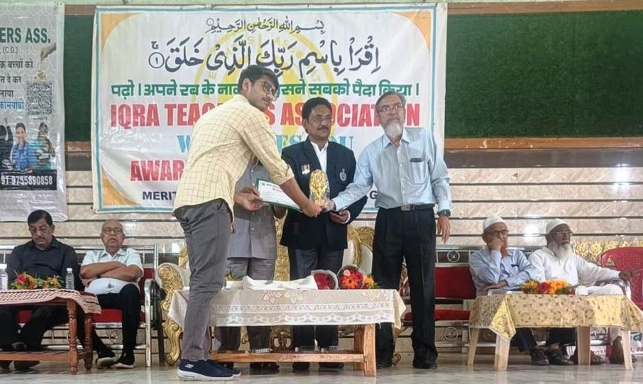 भिलाई। इस्पात नगरी की सेवाभावी संस्था इकरा टीचर्स एसोसिएशन की ओर से होनहार बच्चों का सम्मान समारोह जामा मस्जिद सेक्टर-6 के सामुदायिक भवन में रखा गया। इस दौरान मुख्य अतिथि 21 वीं बटालियन बालोद में डिप्टी कमांडेंट (अतिरिक्त पुलिस अधीक्षक) डॉ. इरफानुल रहीम खान व अन्य अतिथियों ने 10वीं और 12वीं में बेहतर अंक हासिल करने वाले बच्चों को सम्मानित किया। वहीं विभिन्न समाजसेवी संगठनों के कार्यों को भी सराहा गया। शुरुआत हाफिज मंजर आलम की कुरआन शरीफ की तिलावत से हुई।