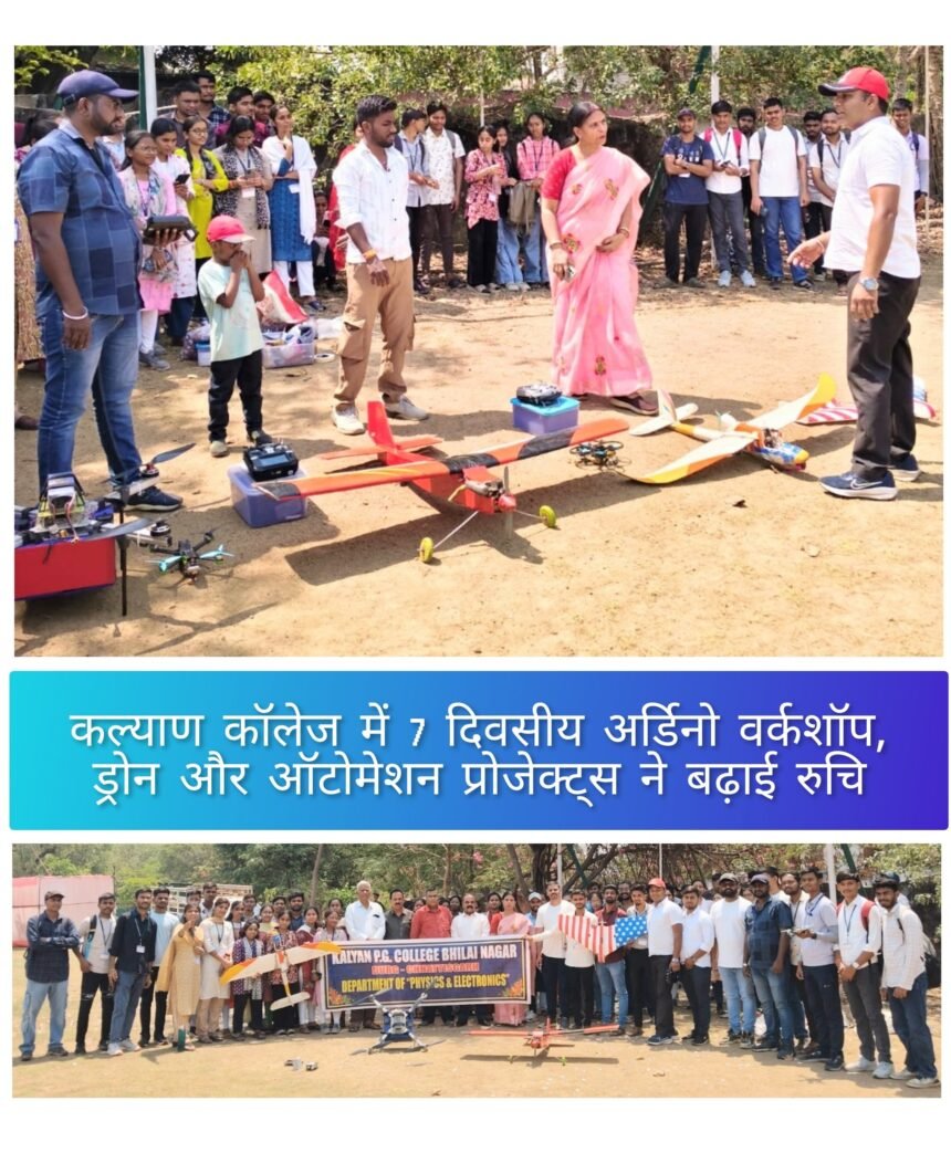 भिलाई, शिक्षाधानी भिलाई के सेक्टर-7 स्थित कल्याण पीजी कॉलेज में अर्डिनो वर्कशॉप का आयोजन किया गया। कॉलेज के फिजिक्स डिपार्टमेंट द्वारा वॉबल लैब और एसएसआईपीएमटी, रायपुर के (एआईसीटीई आइडिया लैब) के सहयोग से आयोजन हुआ। इसमें अर्डिनो और इसके कृषि, रक्षा और चिकित्सा परियोजनाओं में उपयोगी और महत्वपूर्ण विषय पर सात दिवसीय वर्कशॉप का आयोजन किया गया। इस वर्कशॉप का उद्देश्य स्टूडेंट्स को जरूरी स्किल्ड प्रदान करना और उन्हें इनोवेटिव टेक्निक्स के वास्तविक अनुप्रयोगों से अवगत कराना है।