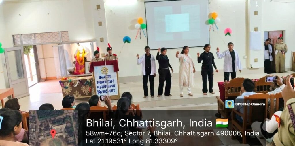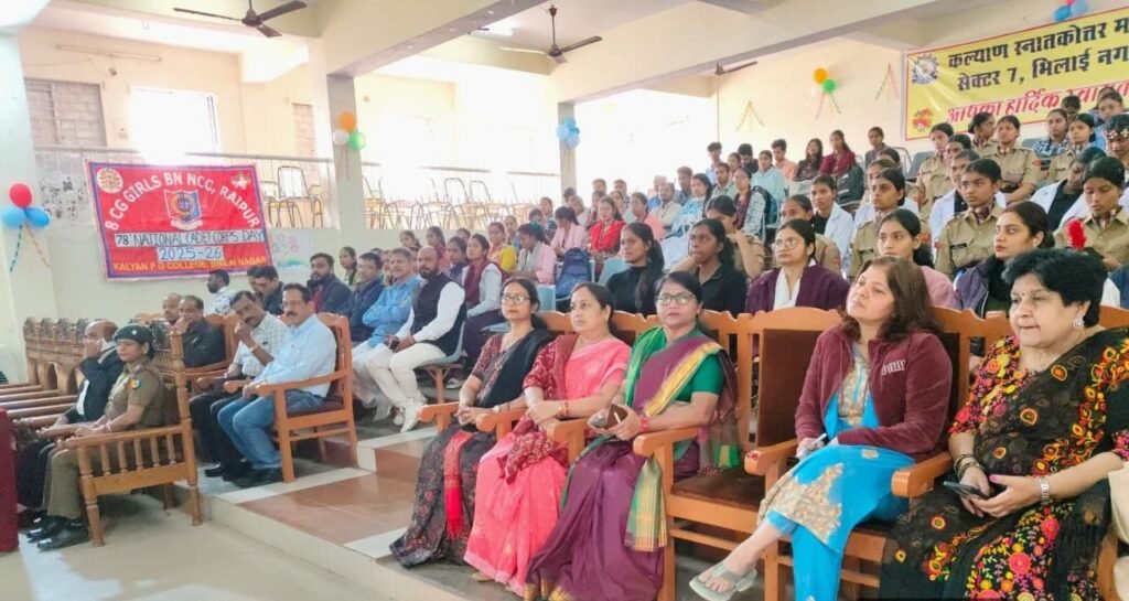 भिलाई, कल्याण स्नातकोत्तर महाविद्यालय, भिलाई नगर में 78 वाँ एनसीसी दिवस हर्ष व उल्लास के साथ मनाया गया । यह आयोजन महाविद्यालय के एनसीसी छात्रा कैडेट्स के द्वारा किया गया । कार्यक्रम का शुभारंभ सरस्वती माता के समक्ष दीप प्रज्वलित व माल्यार्पित कर किया गया तथा एलसीपीएल मीना के द्वारा सरस्वती वंदना किया गया ।
