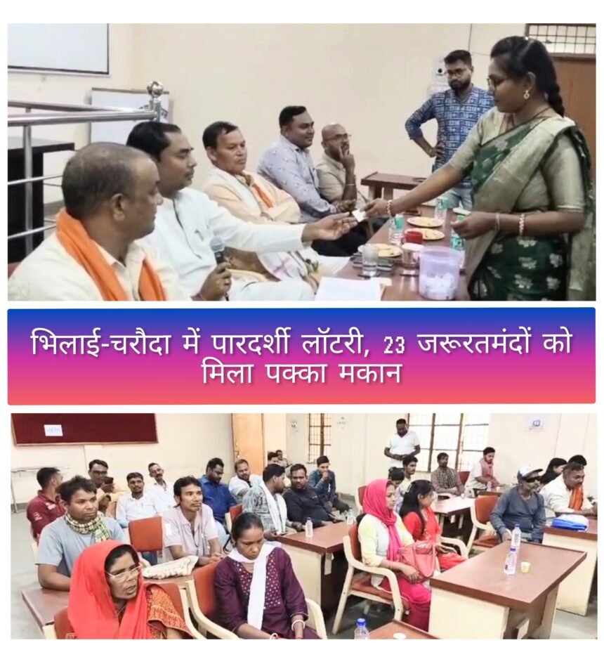 भिलाई, किराये के मकानों में रह रहे जरूरतमंद परिवारों के लिए सोमवार को भिलाई-चरौदा नगर निगम ने एक बड़ी सौगात दी। प्रधानमंत्री आवास योजना (मोर मकान-मोर आस) के तहत वार्ड क्रमांक 06 उमदा क्षेत्र में निर्मित एएचपी आवासों का आबंटन लॉटरी पद्धति से किया गया। इस प्रक्रिया में 87 आवासों में से 23 हितग्राहियों को उनके सपनों का घर आवंटित किया गया।