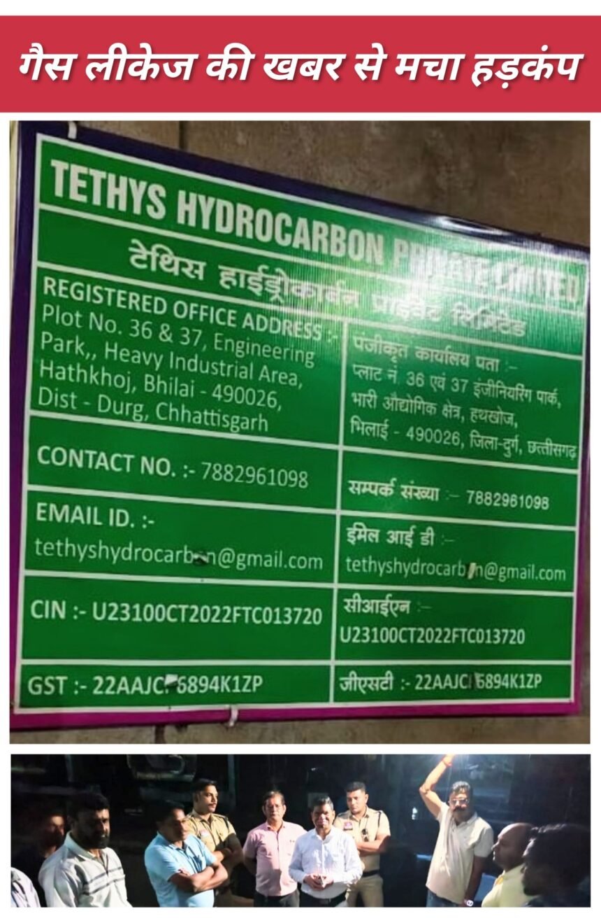 भिलाई, भिलाई-3 क्षेत्र के हथखोज स्थित टेथिस हाइड्रो कार्बन प्रायवेट लिमिटेड इंजीनियरिंग पार्क में गैस लीकेज की सूचना से मंगलवार को हड़कंप मच गया। सूचना मिलते ही प्रशासनिक और स्वास्थ्य विभाग की टीम तत्काल मौके पर पहुंची और स्थिति का जायजा लिया।