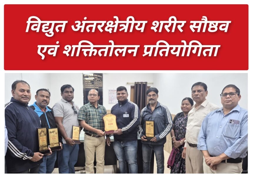 छत्तीसगढ़ स्टेट पावर कंपनीज के केन्द्रीय क्रीडा एवं कला परिषद के तत्वाधान में अंतर्क्षेत्रीय शक्तितोलन एवं शरीर सौष्ठव प्रतियोगिता का आयोजन मड़वा क्षेत्र में दिनांक 25 से 26 मार्च 2026 तक किया गया। शक्तितोलन के विभिन्न कैटेगरी में दुर्ग रीजन की टीम ने उत्कृष्ट प्रदर्शन करते हुए अंडर 105 कि.ग्रा. वर्ग में कुल 740 कि.ग्रा. वजन उठाकर श्री राज वासनिक नेे स्वर्ण एवं अंडर 93 कि.ग्रा. वर्ग में कुल 490 कि.ग्रा. वजन उठाकर राकेश कुमार नायक ने रजत पदक कुल 390 कि.ग्रा. वजन उठाकर सुरेन्द्र चौधरी ने कास्य पदक प्राप्त किया। इस स्पर्धा में शरीर शौष्ठव में उत्कृष्ट प्रदर्शन करते हुए प्रथम ग्रुुप 05फीट 02 इंच श्रेणी में संतोष कुमार एवं द्वितीय ग्रुप 05 फीट 06 इंच श्रेणी में राकेश कुमार नायक ने रजत पदक प्राप्त किया।