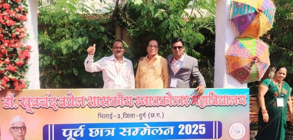 भिलाई। डॉ. खूबचंद बघेल शासकीय स्नातकोत्तर महाविद्यालय, भिलाई-3 में शनिवार का दिन पुराने छात्रों के लिए यादों का झरना बनकर आया। वर्षों बाद जब कॉलेज के प्रांगण में कदम पड़े, तो गलियारों में गूंज उठी वही पुरानी हंसी, वही मस्ती, और “फिर वही सुनहरे पल” की थीम सच होती नज़र आई।