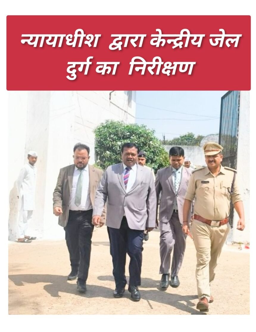 दुर्ग, 28 मार्च 2026 को मुख्यालय स्थित केन्द्रीय जेल दुर्ग का प्रधान जिला एवं सत्र न्यायाधीश जिला दुर्ग (छ०ग०) द्वारा निरीक्षण किया गया। निरीक्षण में उन्होंने महिला प्रकोष्ठ में निरूद्ध महिला बंदियों से उनकी प्रकरण की स्थिति, स्वास्थ्य सेवाओं की उपलब्धता, भोजन की गुणवत्ता, साफ सफाई एवं स्वच्छता व्यवस्था के संबंध में जानकारी ली गई। तत्पश्चात जेल अस्पताल में बीमार बंदियों के स्वास्थ्य के बारे में व्यक्तिगत चर्चा कर उनकी समस्याओं और आवश्यकताओं से अवगत हुए। उन्होंने पुनर्वास आधारित योजनाएँ (Skill & Reform Model) के तहत कम्प्यूटर प्रशिक्षण प्राप्त कर रहे बंदियों, एल.ई.डी. बल्ब, आचार, फर्नीचर एवं अन्य सामग्री तैयार कर रहे बंदियों से उनके प्रकरण में बारे में जानकारी ली गई। निरीक्षण के दौरान उन्होंने जेल में सजायाफ्ता बंदियों के अपील संबंधी प्रकरणों को अद्यतन करने एवं बंदियों को प्रकरण की वर्तमान स्थिति से अवगत कराने के निर्देश जेल अधिकारियों को दिये।