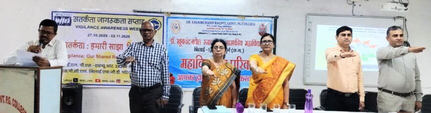 भिलाई, डॉ. खूबचंद बघेल शासकीय महाविद्यालय, भिलाई-3 में सतर्कता जागरूकता सप्ताह के अंतर्गत एक विशेष सतर्कता जागरूकता कार्यक्रम का आयोजन किया गया। यह कार्यक्रम भारत हेवी इलेक्ट्रिकल्स लिमिटेड (BHEL) के सहयोग से संपन्न हुआ।