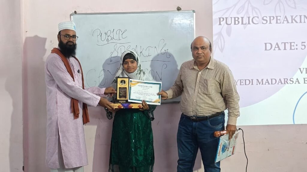 जिसमें सलीम अहमद खान ने इंग्लिश ग्रामर और रूमैशा अहमद ने स्पोकन इंग्लिश और प्रेजेंटेशन की क्लास ली। आखिरी दिन 5 अक्टूबर रविवार को सार्वजनिक भाषण प्रतियोगिता रखी गई। इस दौरान जिसमें मेहमाने खुसूसी भिलाई स्टील प्लांट से रिटायर शेख शादी, डॉक्टर नौशाद सिद्दीकी, सीएसईबी में पदस्थ इंजीनियर सरफराज नवाज और फैशन डिजाइनर इमरान अहमद व कमेटी के मेंबर मौजूद थे। इन मेहमानों ने समाज के लिए तालीम की अहमियत पर बात रखी और तालीम से समाज में बेहतर मकाम हासिल करने और समाज को आगे बढ़ाने सीख दी। मेहमानों ने मदरसा इंचार्ज मुहम्मद उमर सिराजी की कोशिशों और मेहनत की सराहना भी की।