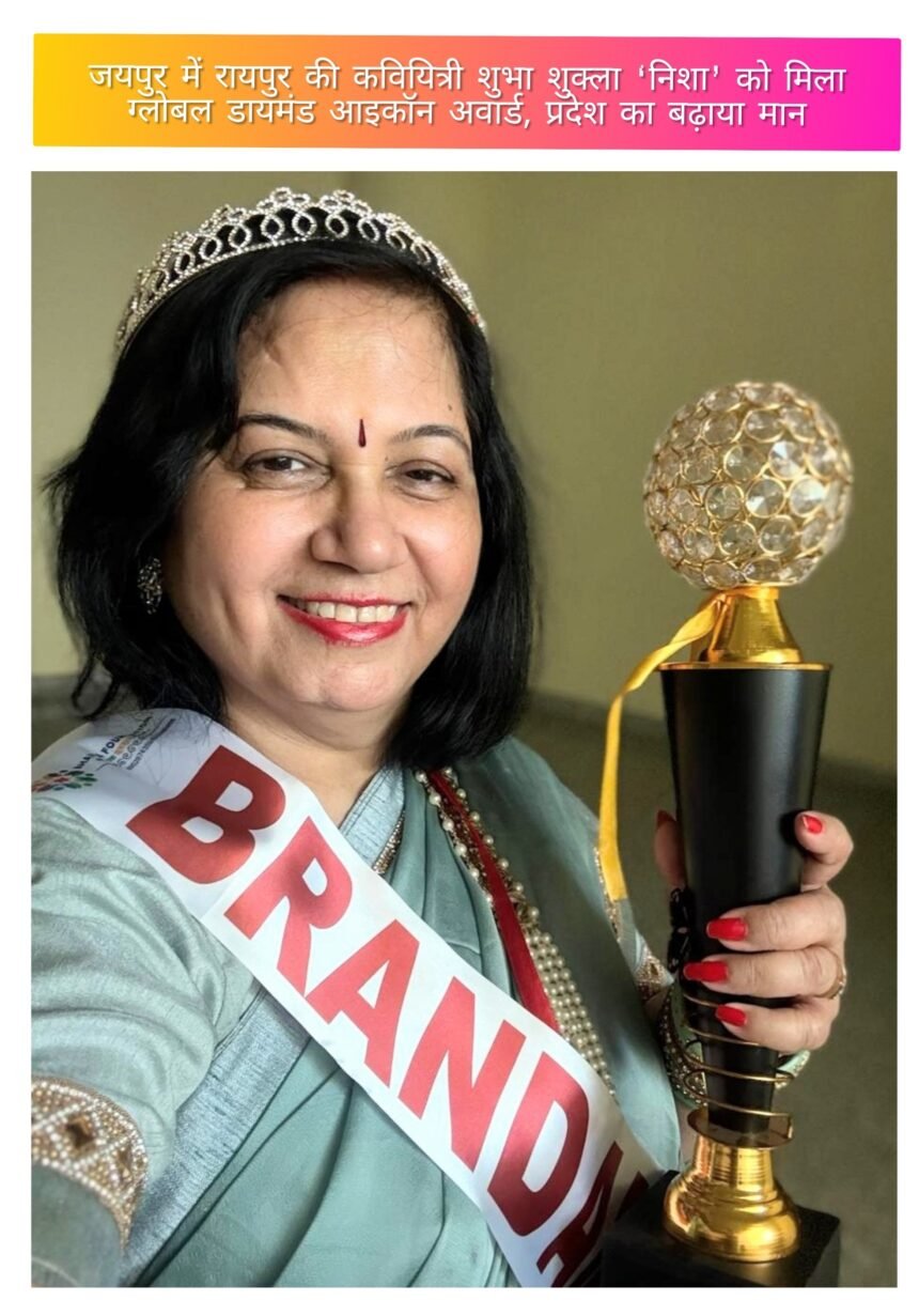 जयपुर में ग्लोबल डायमंड आइकॉन अवार्ड से सम्मानित हुईं रायपुर की कवियित्री शुभा शुक्ला निशा