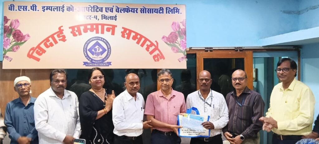 बीएसपी एम्पलाइज कोऑपरेटिव एंड वेलफेयर सोसाइटी लिमिटेड सेक्टर-4 ने अगस्त माह के रिटायर कर्मियों को दी विदाई