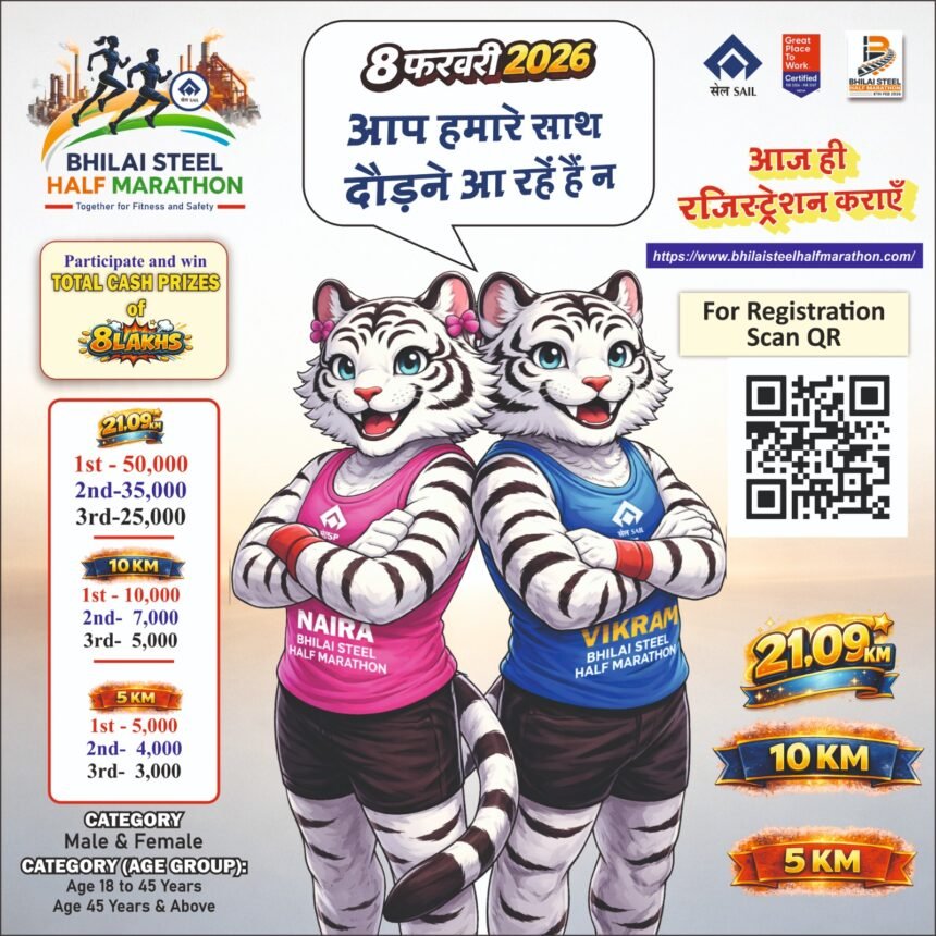 दौड़ बनेगी पहचान, फिटनेस बनेगी शान – भिलाई स्टील हाफ मैराथन 2026