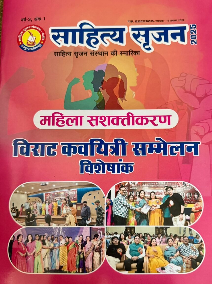साहित्य सृजन संस्थान की महिला सशक्तिकरण पर आयोजित कवयित्री सम्मेलन 2025 पर आधारित स्मारिका “साहित्य सृजन 2025” का विमोचन भी काव्य संध्या के मध्य में किया जायेगा। संस्था की अध्यक्ष (महिला प्रकोष्ठ) ममता खरे एवं संयोजक उमेश सोनी ने जानकारी दी कि संस्था प्रतिमाह स्थापित एवं युवा रचनाकारों को मंच प्रदान कर उनके उत्कृष्ट काव्य पाठ को प्रोत्साहित और सम्मानित भी करती है।