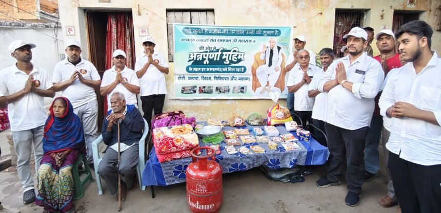 भिलाई, संत रामपाल महाराज की प्रेरणा से देशभर में संचालित अन्नपूर्णा मुहिम के अंतर्गत दिनांक 24 दिसंबर को रामनगर सुपेला, वार्ड 19, भिलाई, जिला दुर्ग में स्थानीय सेवादारों ने समाज सेवा का एक सराहनीय उदाहरण प्रस्तुत किया। इस सेवा कार्यक्रम के दौरान बुजुर्ग दंपत्ति नरोत्तम यादव, जो पिछले काफी समय से पैरालाइसिस (लकवा) की समस्या से जूझ रहे हैं, उनके परिवार को दूसरी बार राशन सामग्री, दैनिक उपयोग की वस्तुएँ और अन्य आवश्यक सामान उपलब्ध कराकर सहायता प्रदान की गई।